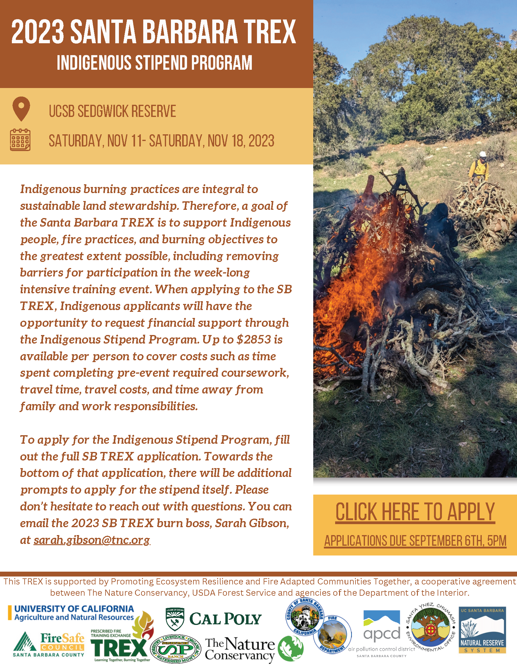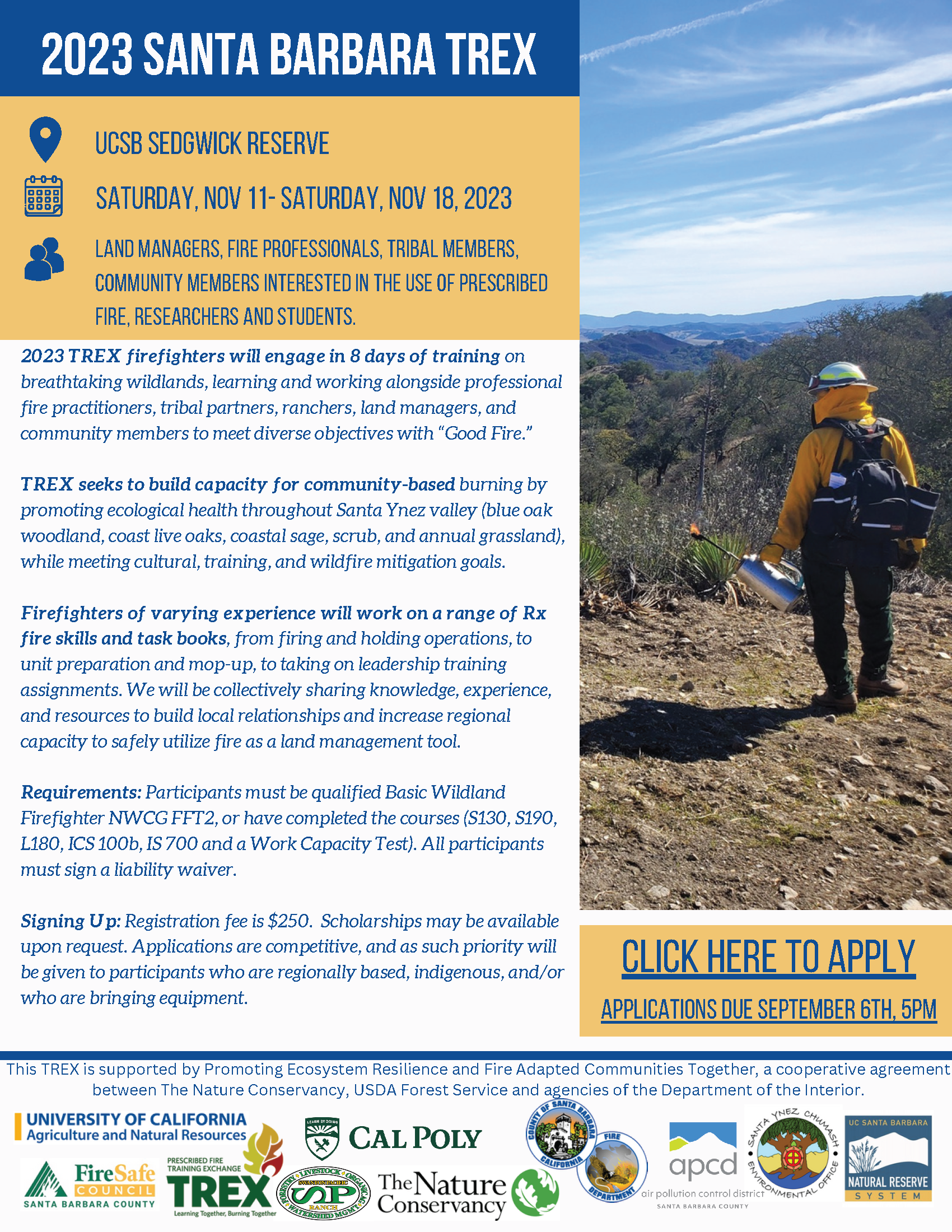 « All Events This event has passed. 2023 Santa Barbara TREX November 11, 2023 - November 18, 2023 « CFSC Southern CA Regional Monthly Meeting 10th International Fire Ecology and Management Congress » Add to calendar Google Calendar iCalendar Outlook 365 Outlook Live Details Start: November 11, 2023 End: November 18, 2023 Event Category: Partner Events