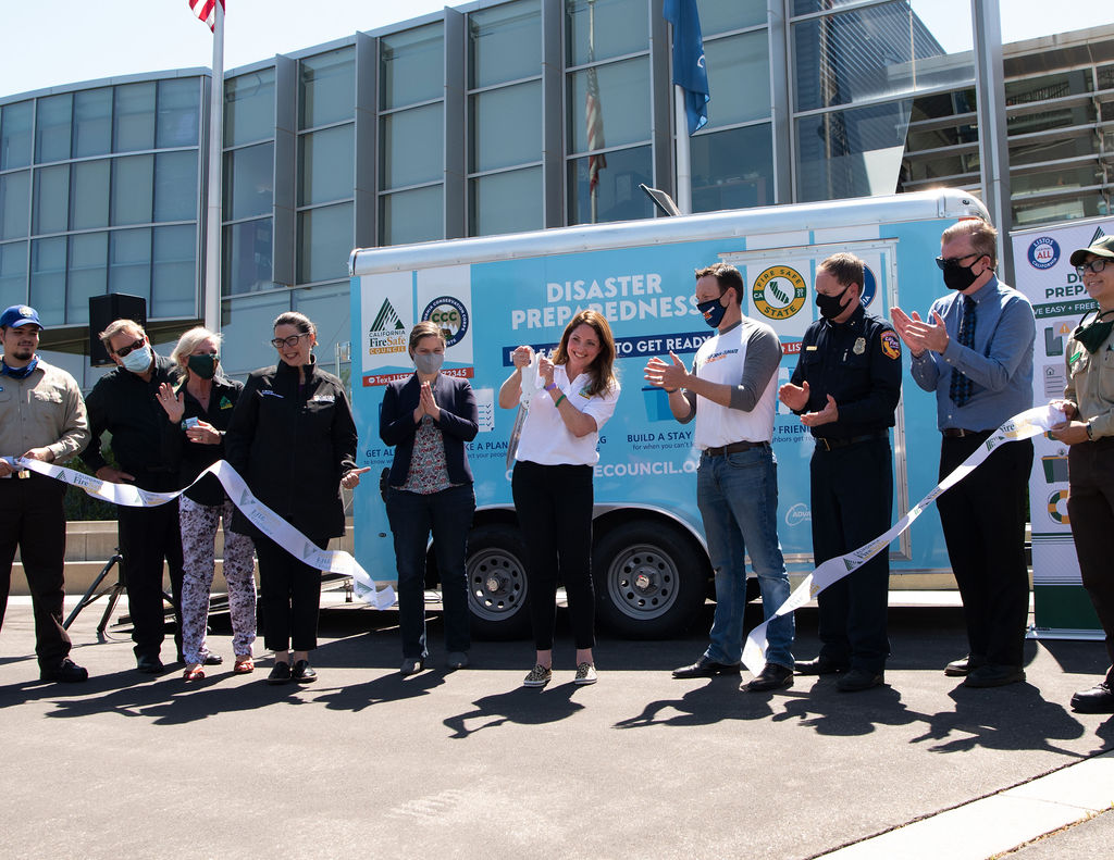 Last week California Fire Safe Council and partners, Listos CA, CCC, Cal Vols, Cal-OES attended a ribbon-cutting to premier the new emergency preparedness trailers and toolkits that will be deployed around our state to aid in community wildfire reduction and resiliency.